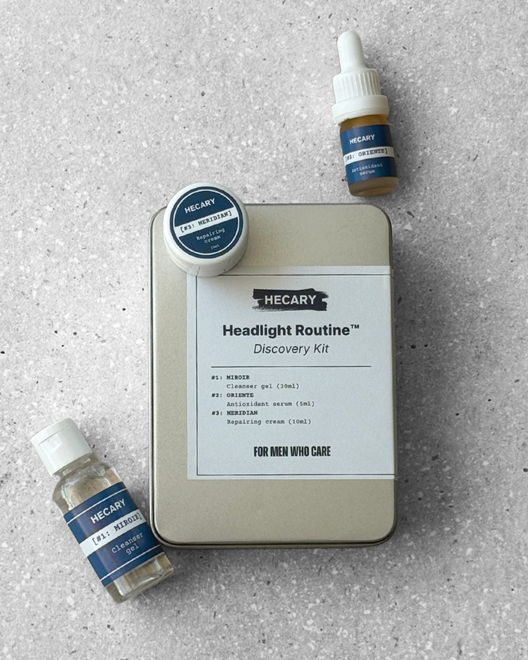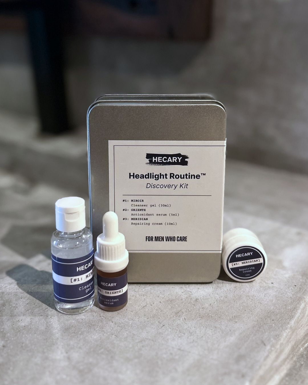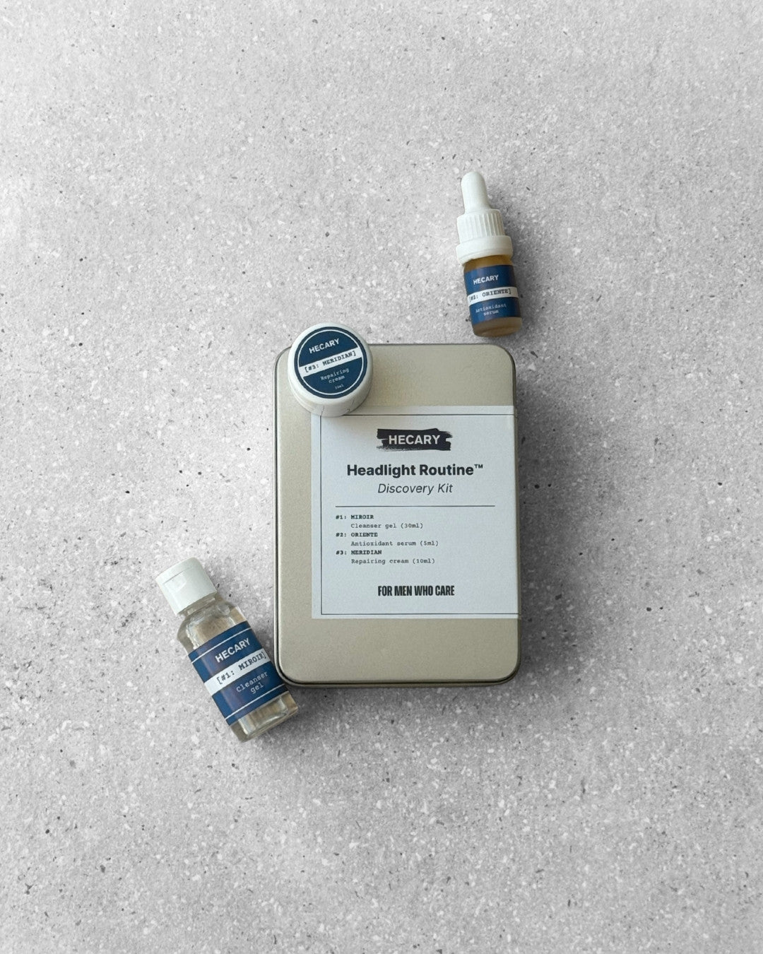 Discover the routine specially created for men's skin with our Discovery Kit, the small-size version of the Headlight Routine™.