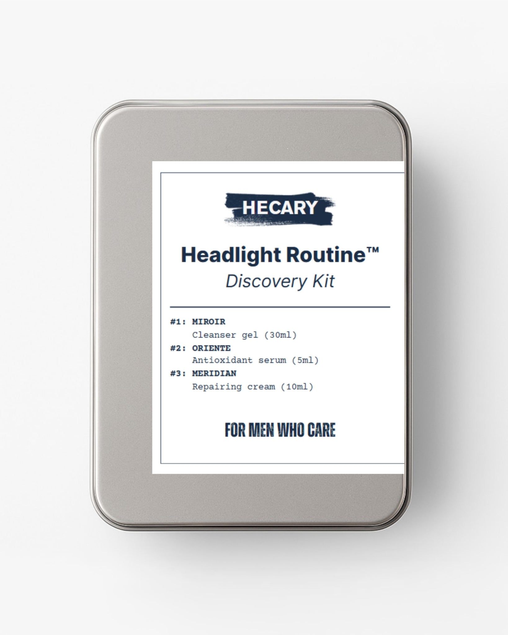 The Discovery Kit includes everything you need to test the Headlight Routine™ for 10 days. The kit includes the products your skin needs in a reduced format: a cleanser gel, a serum and a repairing cream.